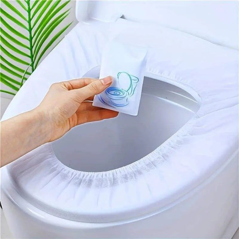 أغطية مقاعد المرحاض التي تستخدم لمرة واحدة: مصنوعة من مادة غير منسوجة بنسبة 100%، هذه الأغطية مقاومة للانزلاق وجيدة التهوية ومقاومة للماء. تحتوي كل عبوة على 10 أغطية للحماية أثناء التنقل. معبأة بشكل فردي لسهولة السفر، وتتميز بتصميم مرن لملاءمة آمنة ومناسبة للمراحيض العامة والفنادق والمستشفيات والنزهات المختلفة
