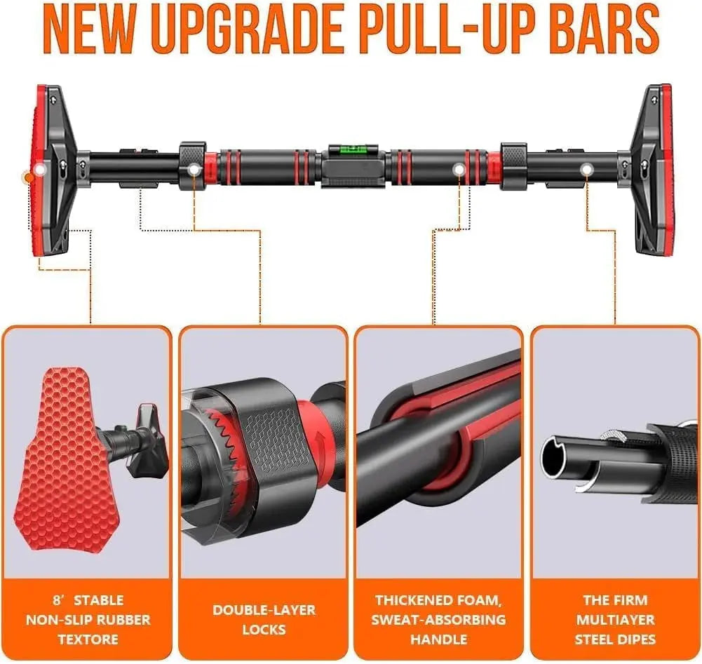No Damage Installation: Easily install and remove the bar from your doorway without leaving any marks, screws, or holes behind.
