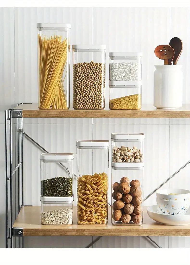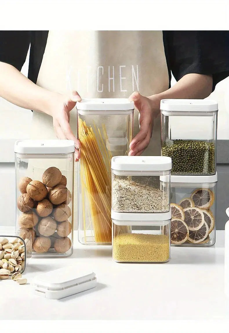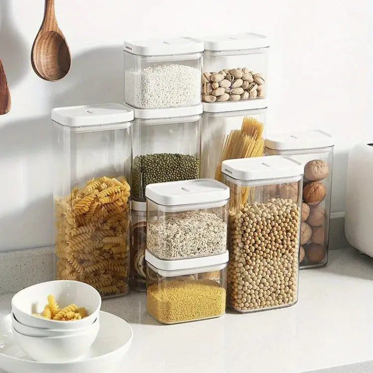 The Airtight Food Storage Container will keep your kitchen organized and your food fresh. Ideal for storing grains, cereals, rice, and dried food, this Transparent Sealed Storage Container is made of durable PET (polyethylene Terephthalate), ensuring long-lasting use. The white latch lid provides an airtight seal to protect your food from moisture and maintain freshness. Its freezer-safe design makes it versatile, while the rectangular shape saves space in your pantry or refrigerator. The transparent body allows for easy identification of contents, making it convenient for everyday use. This container is an ideal choice for organizing your kitchen and keeping food safe and fresh.