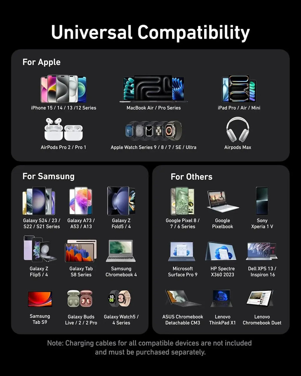 - Compatibility: Laptops, Tablets, Smartphones & USB-C/USB-A Devices