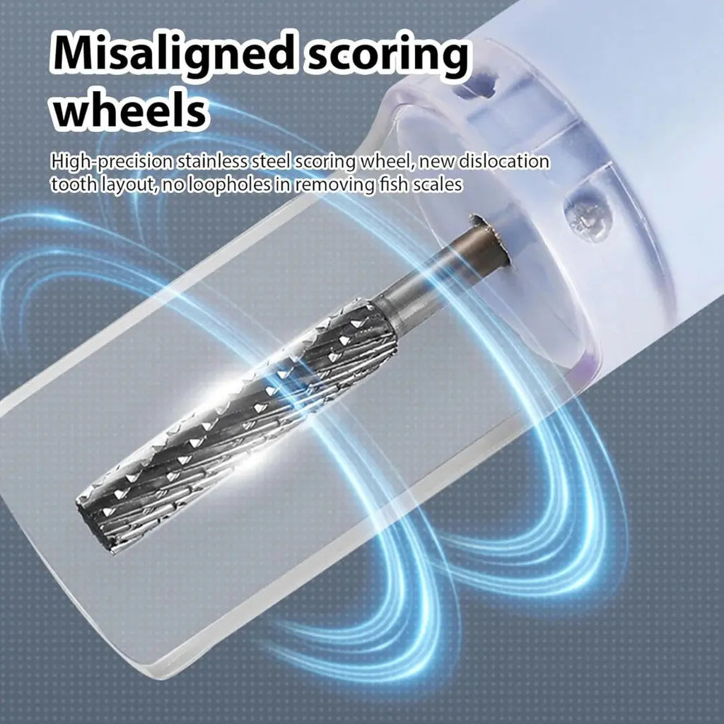 - Quick & Efficient: High-speed rotation and a sharp, staggered blade design remove scales in seconds.