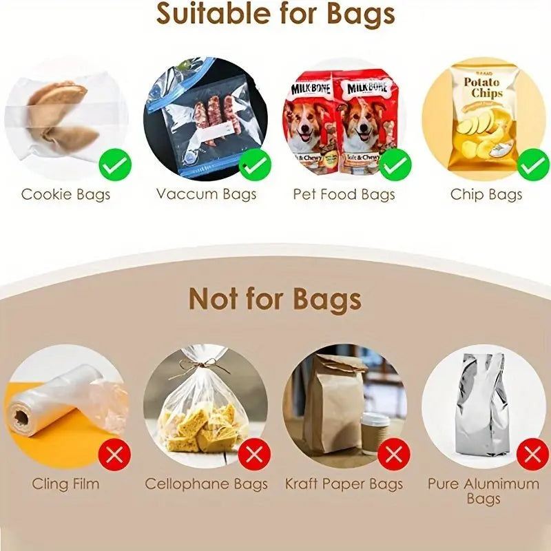 صُنعت آلة غلق الأكياس الصغيرة من مادة ABS المتينة، وهي مصممة لتحمل درجات الحرارة العالية والمنخفضة، مما يضمن طول العمر. باستخدام هذا الجهاز العملي، يمكنك بسهولة إعادة غلق الأكياس الأصلية، مما يحافظ على الأطعمة والوجبات الخفيفة طازجة لفترة أطول مع تقليل هدر الطعام.