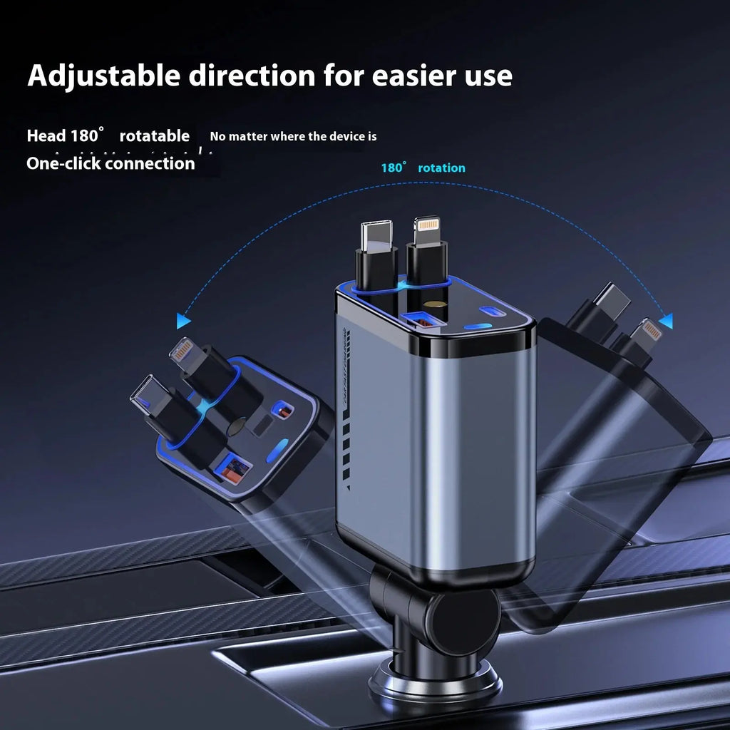 4-in-1 Functionality: Charge up to four devices simultaneously with the dual retractable cables and additional ports.