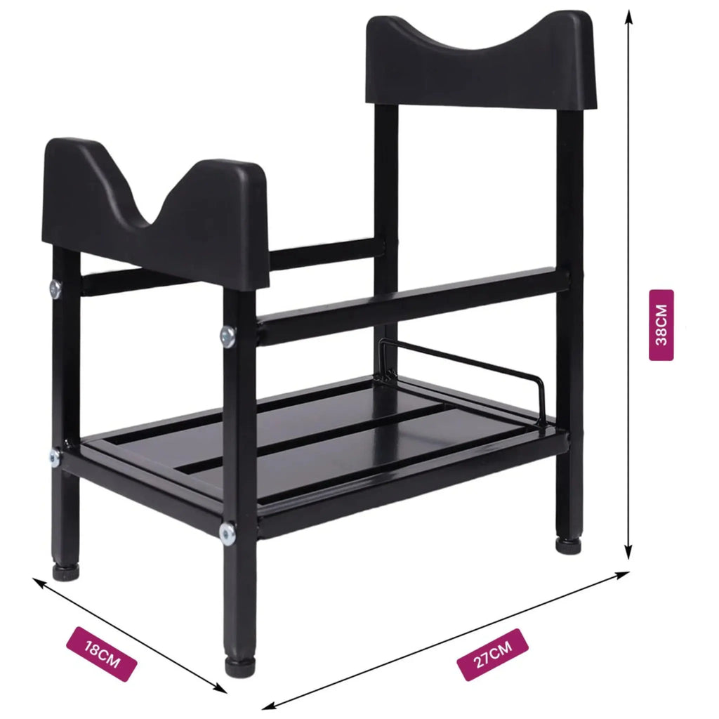 Optimize your hydration station with our convenient and sturdy Water Dispenser Stand for Gallon Water Bottles with Wheels, complete with essential locking wheels. Designed to elevate your standard 3 or 5-gallon water bottles, this stand provides easy access to refreshing water while freeing up valuable counter or floor space. Crafted from durable metal, it ensures robust support and long-lasting stability for heavy water jugs. The inclusion of smooth-gliding wheels allows for effortless relocation of your water supply, perfect for moving it around the kitchen, office, or patio for cleaning or redecorating. Once in place, the integrated locking mechanism on the wheels ensures the stand remains securely fixed, preventing accidental movement or spills. Measuring at a compact 27 x 18 x 38 cm, this stand is designed to fit seamlessly into various spaces without dominating your area. The package includes a high-quality, easy-to-use plastic faucet valve, ensuring a smooth and mess-free dispensing experience. This water dispenser stand with Wheels is an indispensable accessory for homes, offices, and small businesses looking for a practical, mobile, and space-saving solution for their bottled water needs.