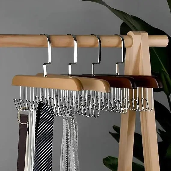 Enhance your storage options with the Wooden stainless steel 8-Hook Hanger, which is specifically designed to optimize closet space while providing a touch of style to your home decor. Constructed from high-quality wood with a smooth lacquered finish, this versatile hanger is ideal for storing coats, belts, scarves, hats, bras, camisoles, and other items. The 360-degree swivel stainless steel hook has easy access to your items, sparing you time and effort. With 8 strong U-shaped hooks, you can hang things safely without the risk of slipping or fabric damage. Its simple yet universal design is suited to any room—your closet, entryway, bedroom, or dorm.