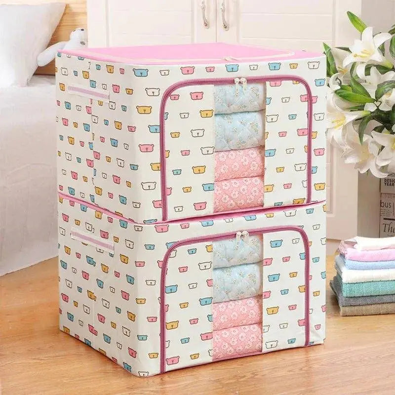 Maximize your space effortlessly with 1 Pcs Cloth Box - Large Capacity Organizer, designed to fit seamlessly into storage beds, wardrobes, closets, or cabinets. Whether you're storing out-of-season clothing, blankets, toys, or household extras, this storage box keeps everything neatly tucked away and protected. Crafted from high-quality Oxford cloth with an electroplated steel frame, this storage solution combines durability with a structured design that holds its shape even when fully loaded.