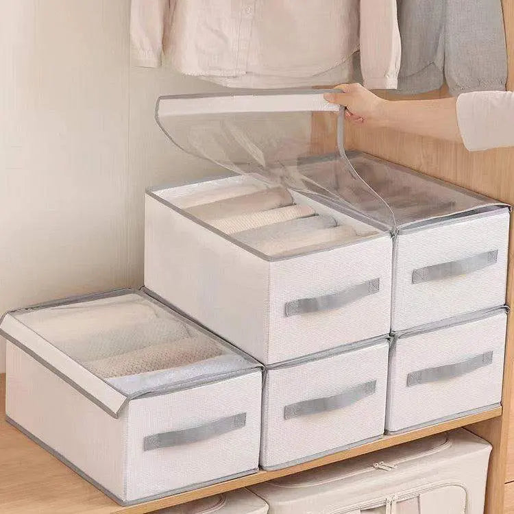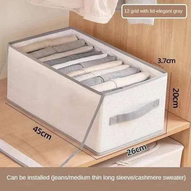 Declutter and organize your wardrobe effortlessly with our 12 Grid Cloth Organizer Wardrobe Storage Box. A convenient cover keeps your clothes protected, making it easy to pick and choose your favorite things from this storage box. With a spacious, neat storage box, goodbye to messy closets and hello to more systematic, stress-free mornings!