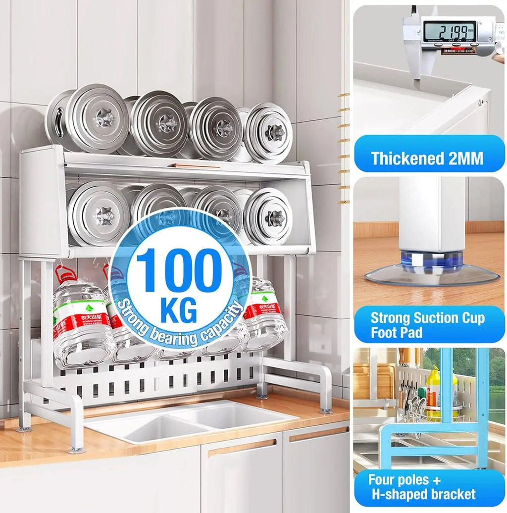 Keep your kitchen neat, organized, and space-efficient with the 3-Tier Sink Drying Rack with Cover, designed for modern homes in Doha Qatar. This premium metal over-the-sink rack maximizes vertical space, offering dedicated drying areas for plates, bowls, utensils, glasses, and cookware. The included protective cover shields dishes from dust, insects, and debris while ensuring hygienic drying. Its adjustable frame fits most standard Qatar kitchen sinks, making it ideal for compact spaces and busy households. Built from high-quality rust-resistant metal, the rack ensures long-lasting durability and stable support for heavy dishware. The sleek White/Opulent Garden finish blends seamlessly with all kitchen interiors. Whether you need a countertop organizer, dish drainer, or multi-tier shelf system, this drying rack brings convenience, hygiene, and superior functionality to your home in Doha Qatar.