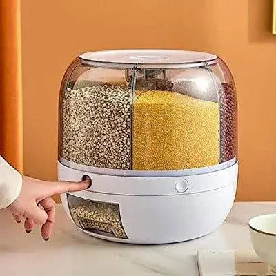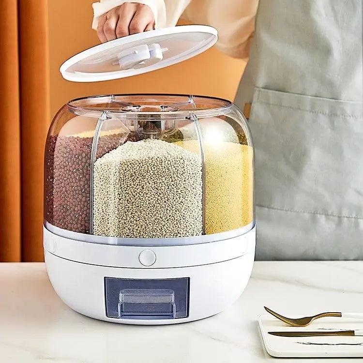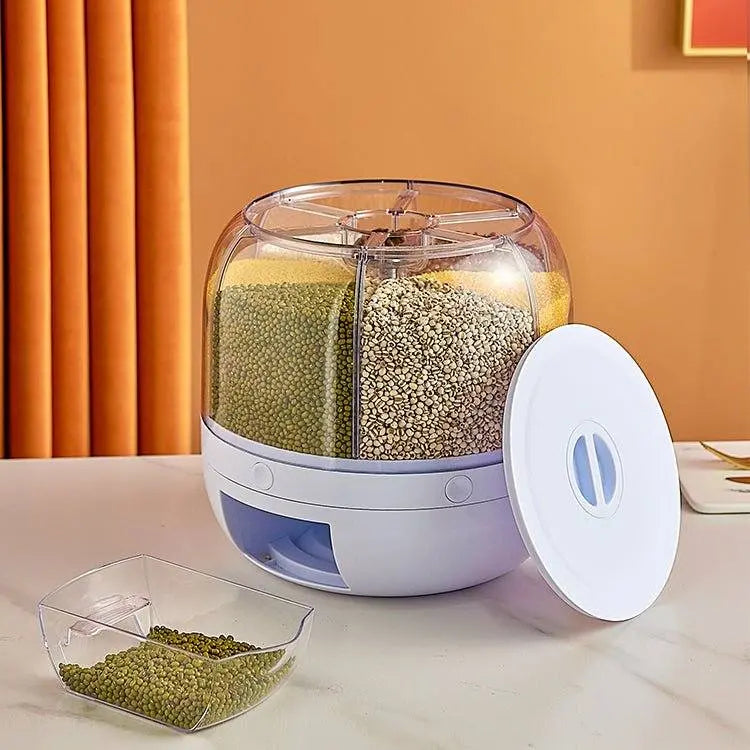 6-Grid Rotating Rice Storage Container - Round Dispenser