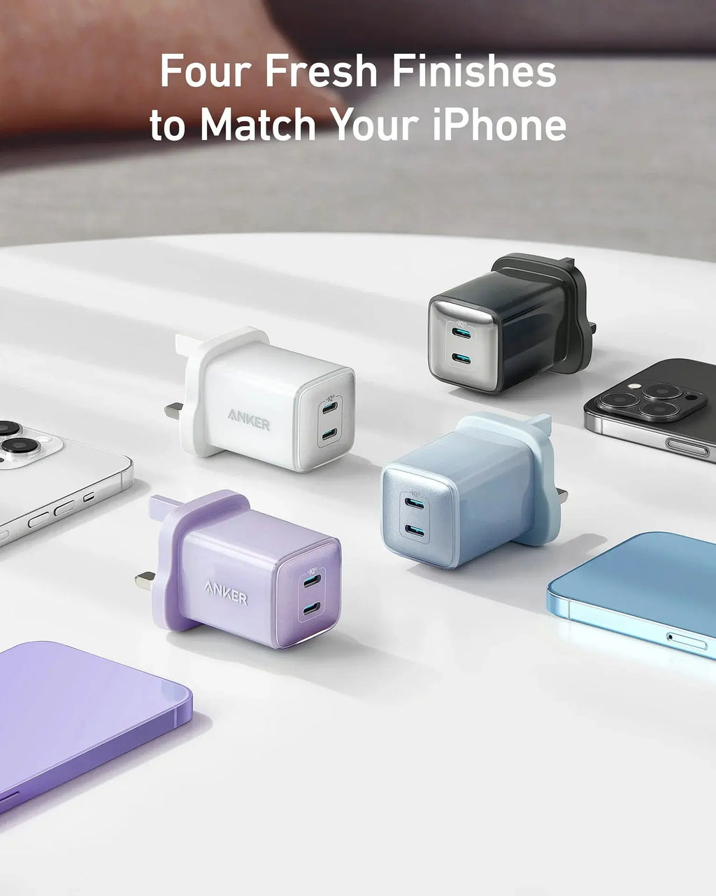 Experience faster, safer, and smarter charging with the Anker 521 Charger (Nano Pro). Designed to deliver 40W max output, this compact dual USB-C charger powers two devices at once without compromising speed. Its ultra-small size—smaller than AirPods Pro—makes it an ideal everyday fast charger for iPhone, iPad, MacBook Air, Samsung, Pixel, and more. Equipped with ActiveShield™ advanced safety technology, it continuously monitors temperature and regulates power output to protect your connected devices. Whether you're charging a MacBook Air, boosting your iPhone battery 3× faster than a 5W charger, or powering up multiple devices at once, the Anker Nano Pro ensures fast, reliable performance every time. The premium icy finish and vibrant color options add a stylish touch to your workspace while delivering the powerful and efficient charging Anker is known for. Compact, powerful, and built for modern devices — this charger is perfect for home, office, and travel.