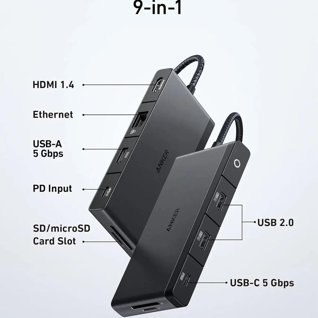 The Anker 552 USB-C Hub 9-in-1 is the perfect all-in-one connectivity solution for laptops, tablets, and USB-C devices in Doha Qatar. Designed for professionals, students, creators, and office users, this compact hub provides 4K HDMI, high-speed 5Gbps data transfer, multiple USB ports, SD/TF card access, and USB-C pass-through charging to power your device while working. Whether you're expanding your laptop ports, connecting to an external 4K monitor, transferring large files, or setting up a clean desk workspace, this 9-in-1 USB-C hub ensures fast, stable, and reliable performance. A top choice in Qatar for remote work, online classes, content creation, business meetings, and travel-friendly productivity.