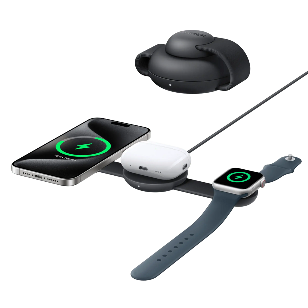 The Anker MagGo 3-in-1 Foldable Wireless Charging Pad is the perfect all-in-one charging solution for users in Doha Qatar who want fast, organized, and travel-friendly wireless charging. This Qi2-certified charger delivers 15W fast charging for iPhone models and 5W charging for Apple Watch and AirPods, making it ideal for home, office, car, and travel use. Designed to replace multiple chargers, this foldable pad powers your iPhone, Apple Watch, and earbuds at the same time—keeping your desk clean and clutter-free. Its compact, pocket-friendly design makes it the perfect companion for frequent travelers in Qatar. With StandBy Mode support, it also enhances your iPhone’s usability for notifications, clock displays, and viewing angles. If you need a fast, portable, and certified MagSafe-compatible wireless charger in Doha Qatar, this is the best option.