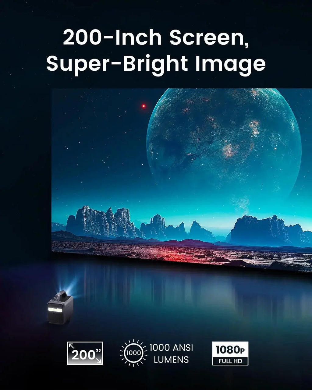 - 1000 ANSI Lumens for bright, cinema-quality projection in low-light outdoor environments
