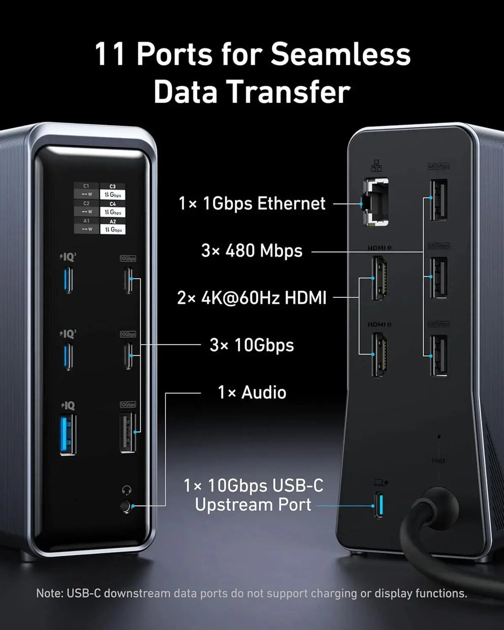 The Anker Prime 14-in-1 Charging Docking Station 160W (A83B62A1) is the ultimate all-in-one workstation for professionals, gamers, creators, and home-office users in Doha Qatar. With 5 USB-C ports, 5 USB-A ports, dual HDMI, and Gigabit Ethernet, it transforms any laptop or desktop into a powerful productivity hub. Delivering up to 160W total output, this docking station supports fast charging for laptops, tablets, and smartphones while allowing seamless connection of monitors, hard drives, peripherals, and high-speed internet. Ideal for users searching for USB-C docking station Qatar, multi-port hub Doha, Anker Prime docking station Qatar, and 160W laptop charger hub. Perfect for MacBook, Windows laptops, office setups, creators, designers, and multi-monitor workstations across Qatar.