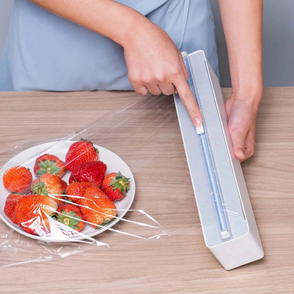 Our cling film dispenser is tough and lasting, handling both hot and cold. It's reusable, has a strong magnet, and won't get messed up even with constant use. The smart design includes a nifty knife for easy cutting and a magnet to stick it on your fridge. No need to struggle - just pull and slide. It also has a handy built-in blade for tearing-free swiping when organizing your food bags. It's easy to use and won't hurt your hands. Plus, it's versatile, keeping your food stuff neat and tidy in your kitchen drawers. Get one for an upgrade in making your food packing hassle-free!