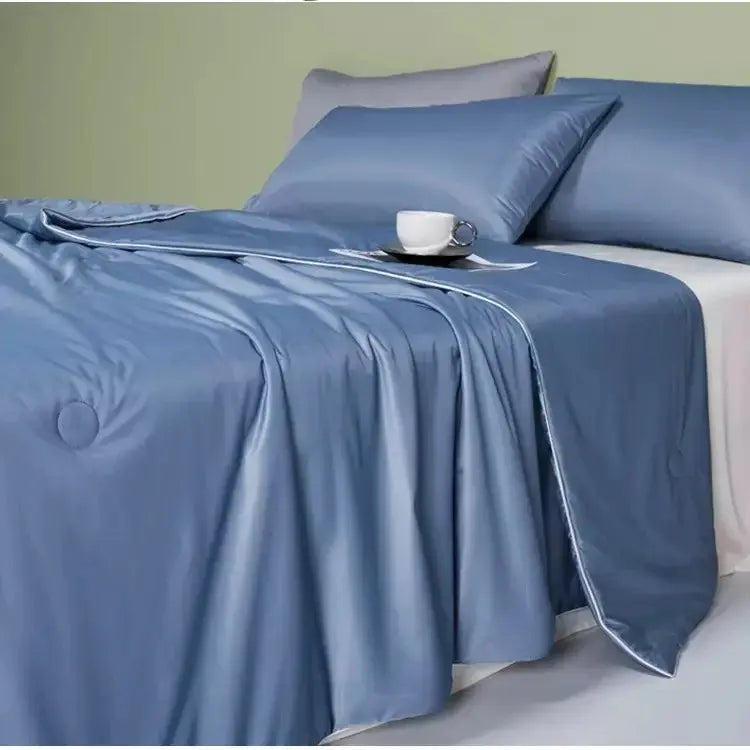 Experience ultimate comfort with our Premium Cooling Quilt Blanket, crafted for hot sleepers and warm climates like Qatar. Made with high-quality materials and advanced stitching techniques, this quilt delivers softness, breathability, and lasting durability. Whether you're lounging on the couch or settling into bed, this lightweight yet cozy blanket helps regulate body temperature, ensuring a restful night's sleep. Ideal for summer use, air-conditioned rooms, or anyone looking for a breathable, skin-friendly cover.