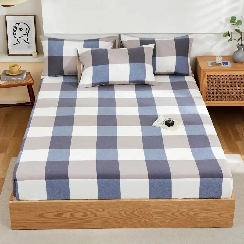 Upgrade your sleep experience with Premium Soft 100% cotton bed sheet with Two pillowcases. Crafted from high-quality fabric, this bedsheet offers a soft and breathable texture that ensures a restful night’s sleep. Available in Single (90x200cm) and King (180x200cm) sizes, this set includes a fitted mattress cover and two matching pillowcases for a complete bedding solution. The elegant design and durable material make it an ideal choice for every bedroom.