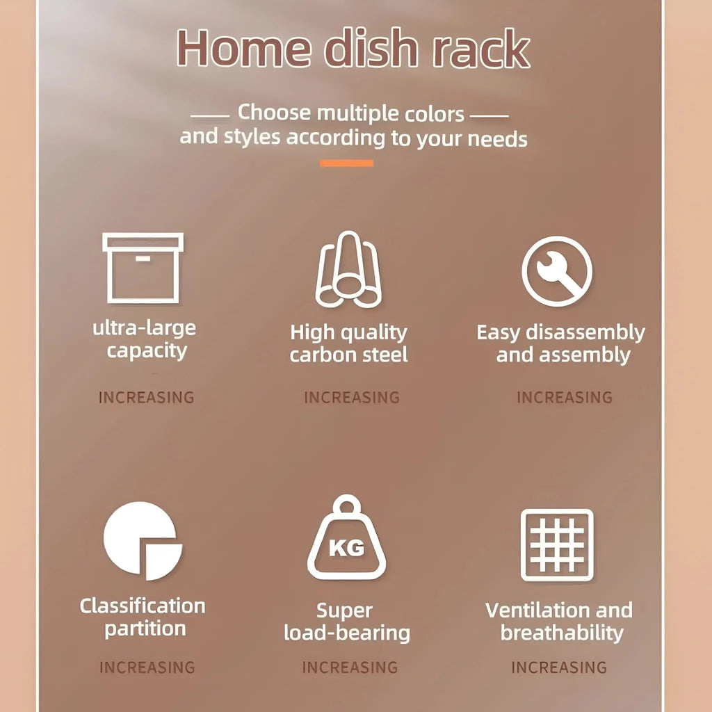 2-Tier Storage Design: Maximizes counter space by separating dishes, bowls, and cups for faster drying.