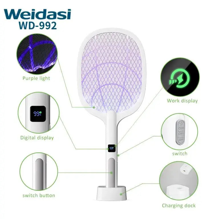 Tired of annoying mosquitoes ruining your sleep and comfort? This electric mosquito racket eliminates insects instantly with a powerful shock system while keeping you safe with its triple-layer protection design. With built-in UV light attraction and a convenient charging base, this is more than just a swatter — it’s a complete mosquito control solution for your home.