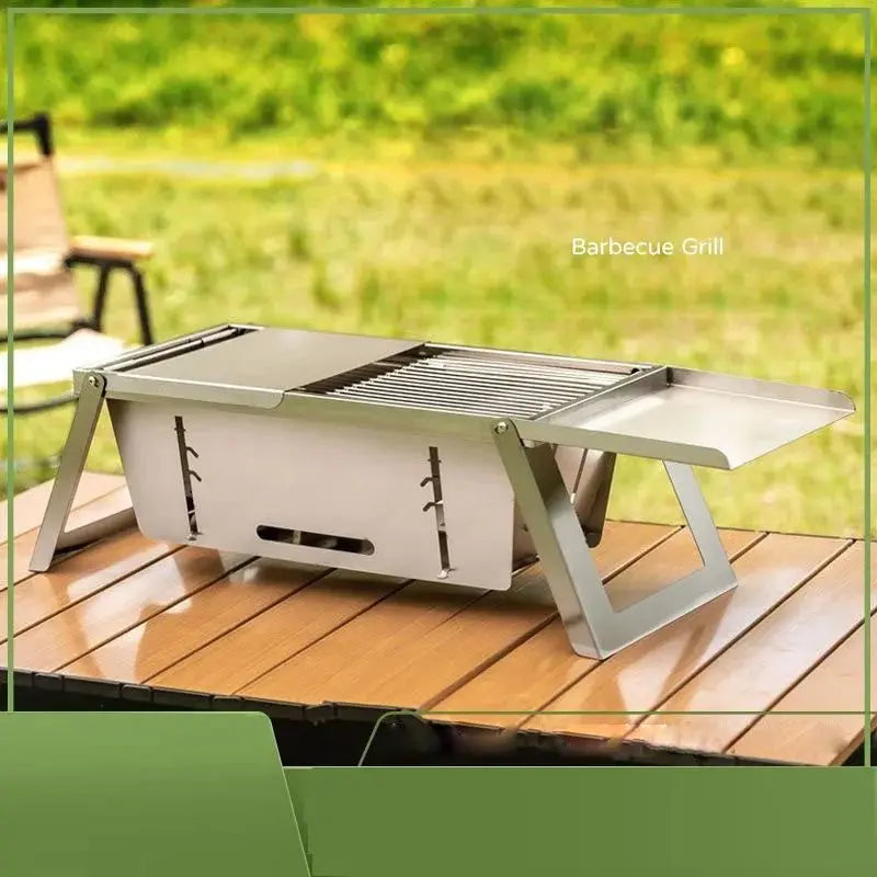 - Foldable Design: Modern notebook-style charcoal grill with a space-saving design.