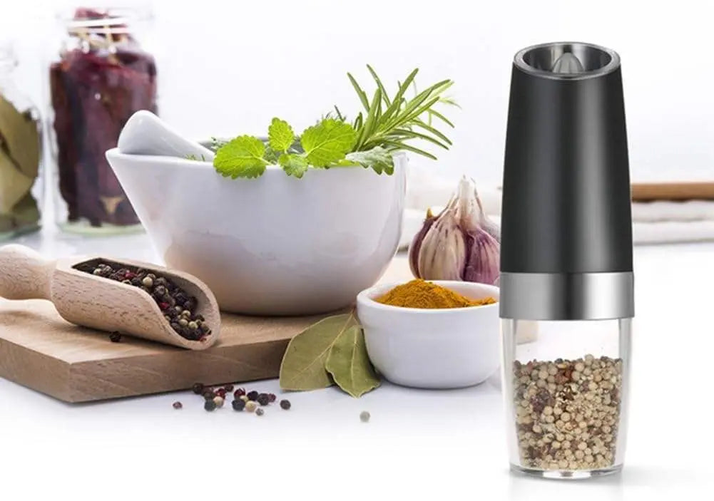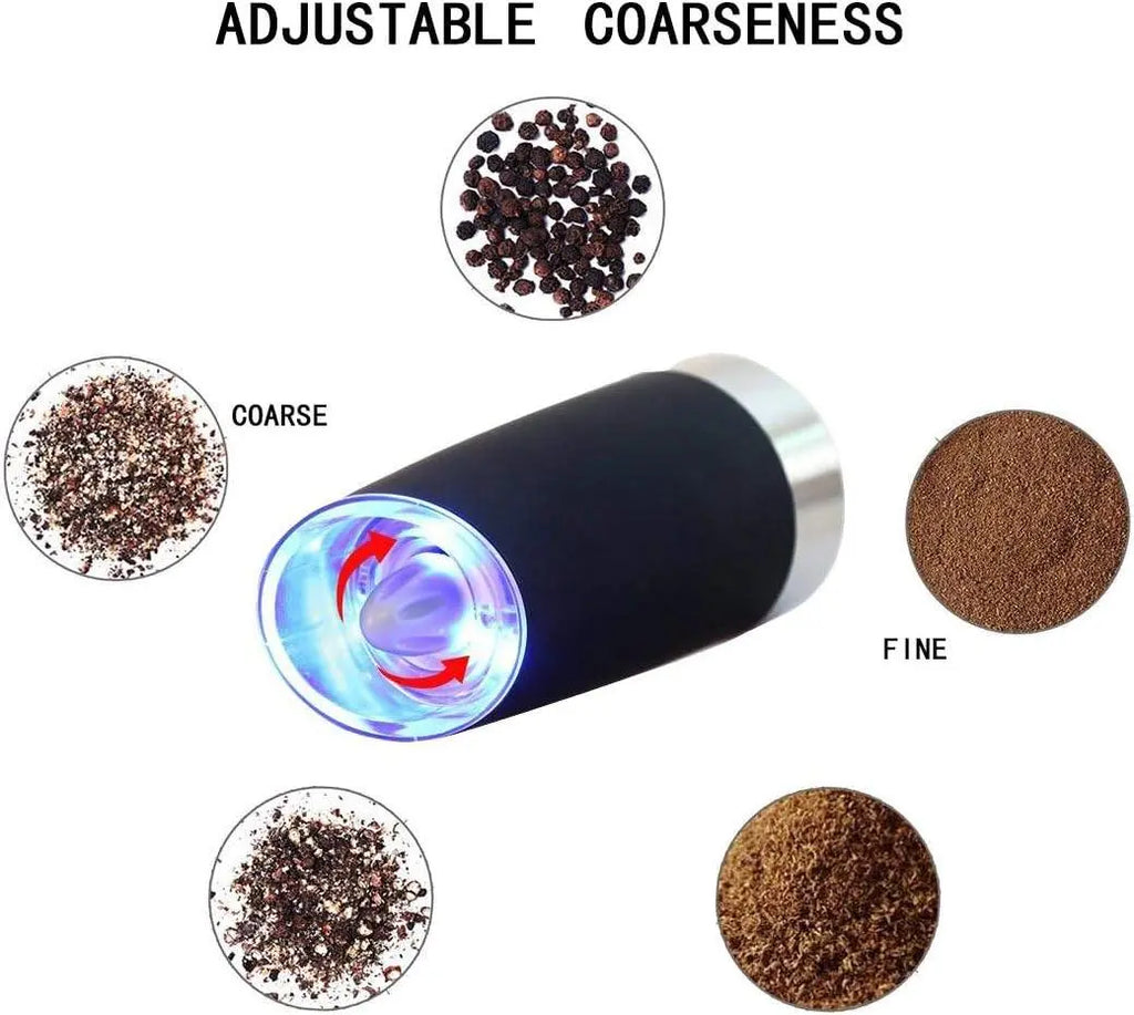 Adjust the top black adjuster to grind your pepper corns or sea salt with fine to coarse