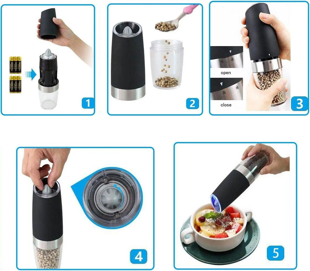 Fill the pepper corns or sea salt into the chamber. Don't over fill. keep the pepper corns or sea salt 80% full in the chamber as maximum limit