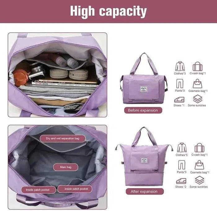 Travel light and stay organized with our Large Capacity Foldable Travel Bag. Perfect for short trips and weekend getaways, this bag holds everything you need with room to spare. And when you're not using it, simply fold it up for easy storage. Built to last, this bag is every traveler's dream.
