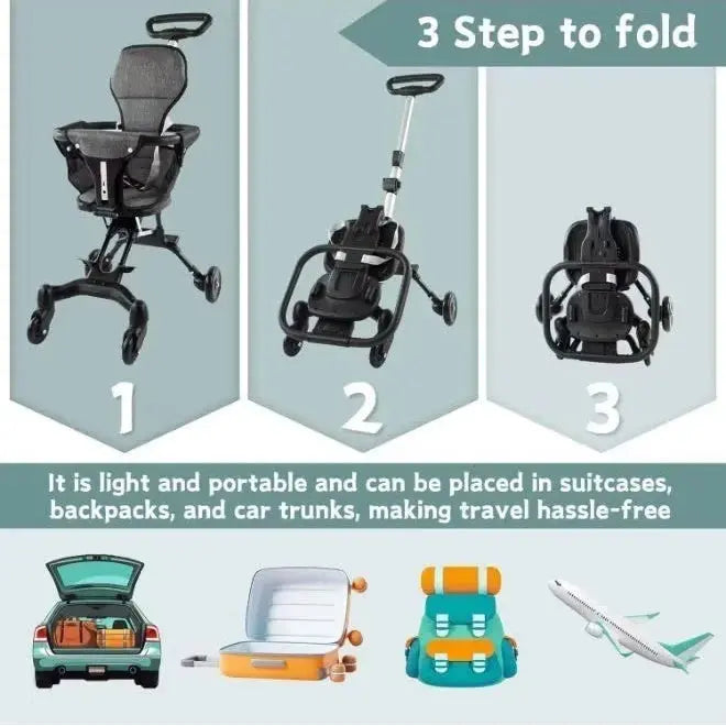 Make every journey easier with this Lightweight Foldable Baby Stroller for Travel, designed for modern parents on the go. With its ultra-compact, cabin-friendly design, this trolley pram is perfect for airplane travel, road trips, shopping, and everyday outings. Engineered for convenience, the stroller features an easy one-hand fold mechanism, smooth steering wheels, and a strong yet lightweight frame. Whether you're navigating busy airports or strolling through the park, this stroller ensures comfort, safety, and effortless mobility. Suitable for babies and toddlers up to 4 years, it offers durability and comfort for both short trips and long adventures.