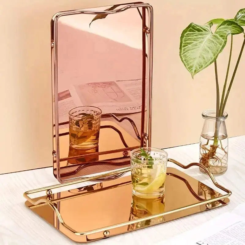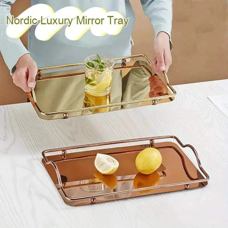 Luxury Serving Tray: Stainless Steel Mirror Light Premium Luxury Tray