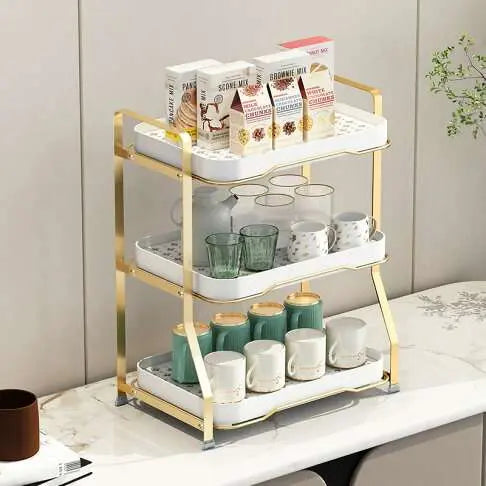 Organize and optimize your kitchen space with the Multi-Layer Golden Kitchen Storage Drain Rack. Its premium, multi-layer design maximizes storage while adding a touch of elegance to your kitchen. Say goodbye to cluttered counters and enjoy the benefits of a well-organized and efficient kitchen with this must-have kitchen essential.