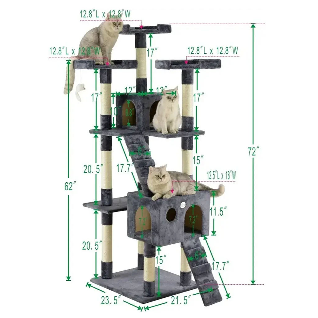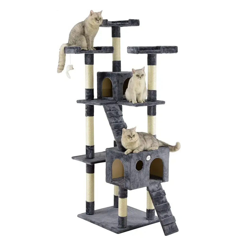 Give your indoor cat the perfect space to climb, rest, scratch, and play with the SKY-TOUCH Cat Tree Tower, designed for homes across Doha Qatar. Built with durable engineered wood and wrapped with natural sisal scratching posts, this multi-level activity centre keeps your cat entertained while protecting your furniture. The structure features a cozy cat condo, soft hammock, padded top perch, ladder, and basket—all covered with skin-friendly plush fabric for enhanced comfort. Its reinforced base and included wall-mount safety strap ensure exceptional stability, making it safe for kittens, adult cats, and small breeds. This modern grey cat tower blends beautifully with any room décor and provides a dedicated space for climbing, resting, and stress-free scratching. Easy-to-assemble design makes it perfect for busy pet parents in Qatar.