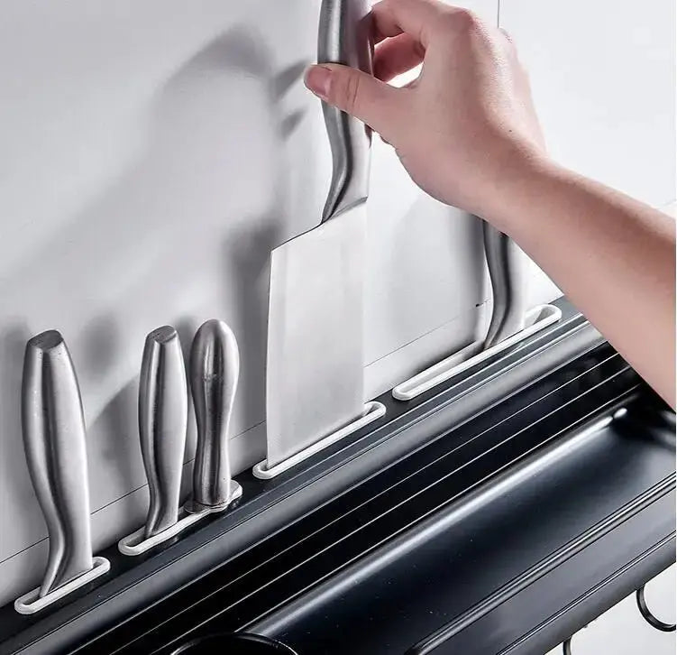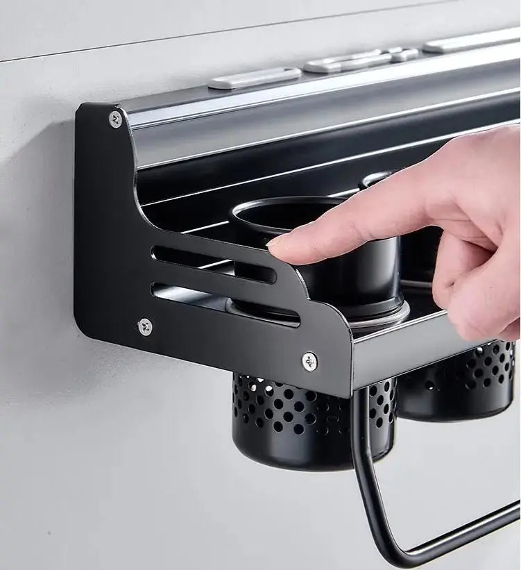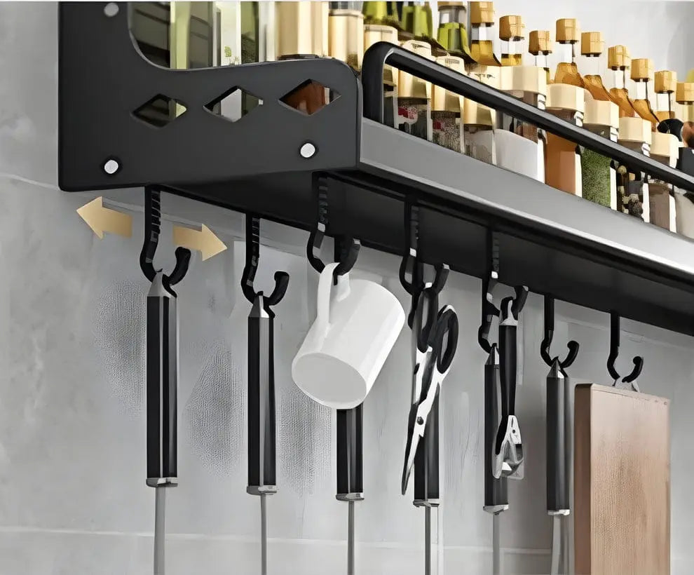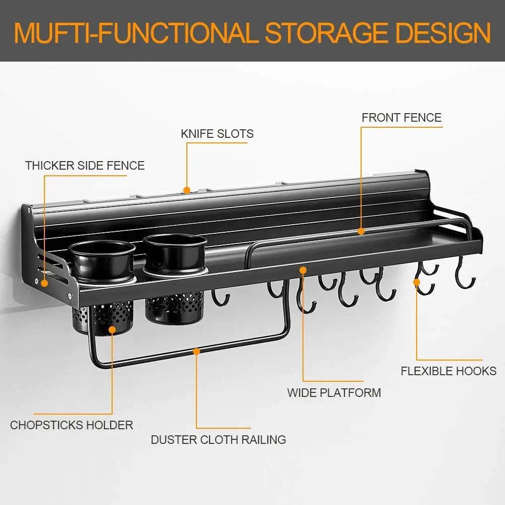 Multi-function : ( With hooks sipes and utensils this wall-mounted not only can store fragrance bottles but also hang a pot bowl saving the space of the tool holder and tablecloth )